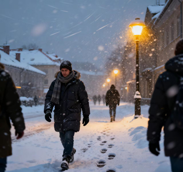 穩(wěn)字當(dāng)先 :雪天步行時,務(wù)必穿上防滑鞋,過馬路前要仔細觀察路況車情,確認安全后再通過。行走時,身體稍微前傾,像企鵝一樣邁著小碎步,這樣能降低重心,保持身體平衡,避免摔倒??傊?,寧可耽誤點時間,也千萬別在濕滑的路面上疾行奔跑。